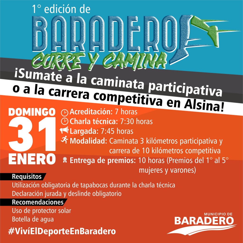 El domingo 31 de enero se llevará adelante la primera edición de Baradero Corre y Camina, un evento deportivo participativo y competitivo que invita a disfrutar del deporte y a su vez de las localidades rurales de la ciudad, con un atractivo recorrido. La inscripción está abierta y es totalmente gratuita