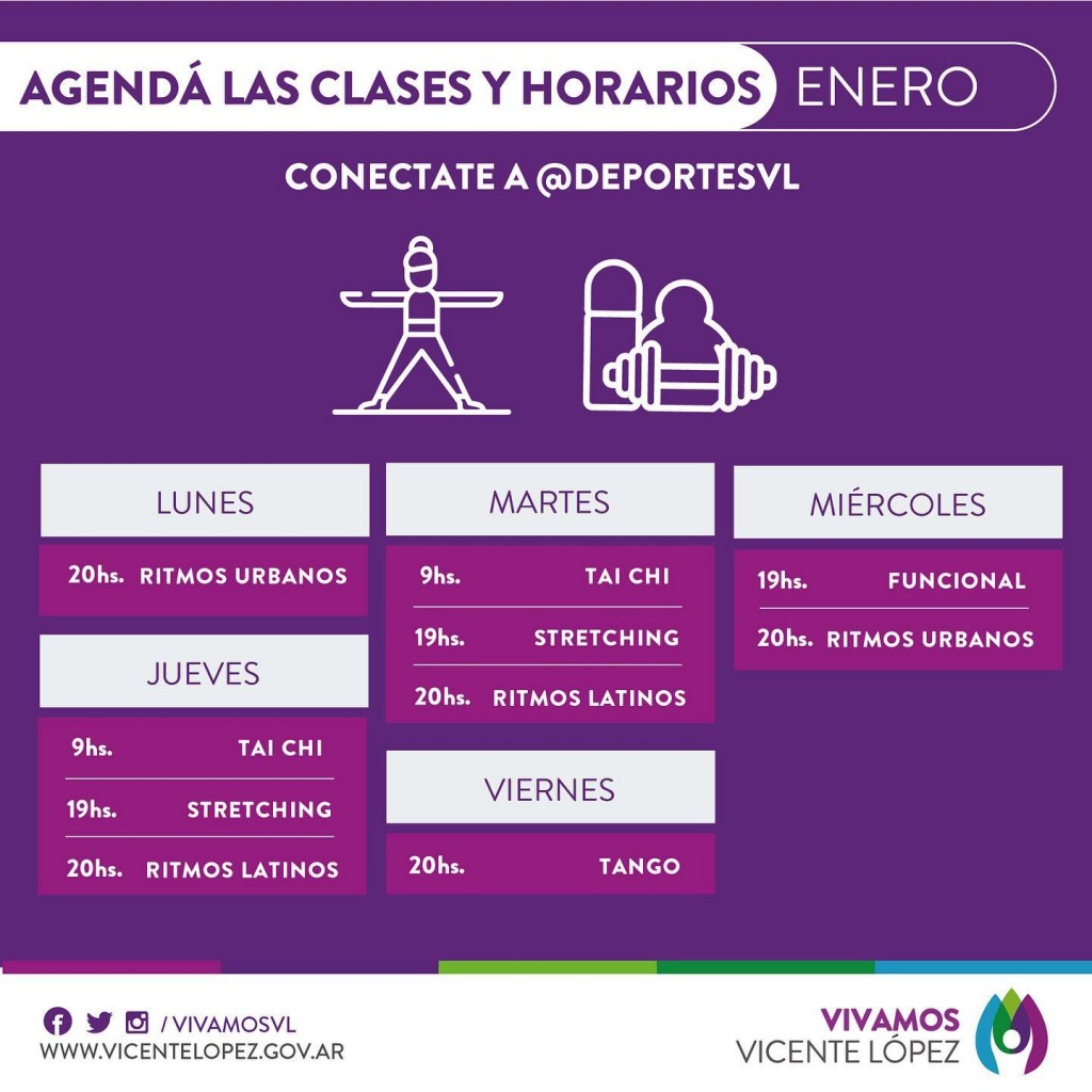 (Vicente López, 28.Ene.2021 / A1 Noticias)Las clases se dictan en vivo a través de los instagrams de @vivamosvl y @deportesvl de lunes a viernes de 9 a 20 horas.