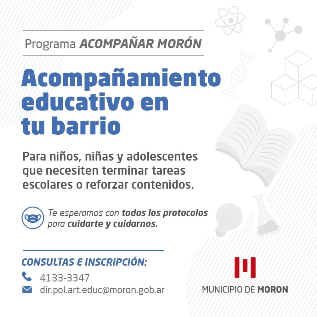 (Morón, 02.Feb.2021 / A1 Noticias) El Municipio de Morón a través del Programa Acompañar Morón le ofrece a niños, niñas y adolescentes un acompañamiento educativo en los barrios del distrito.