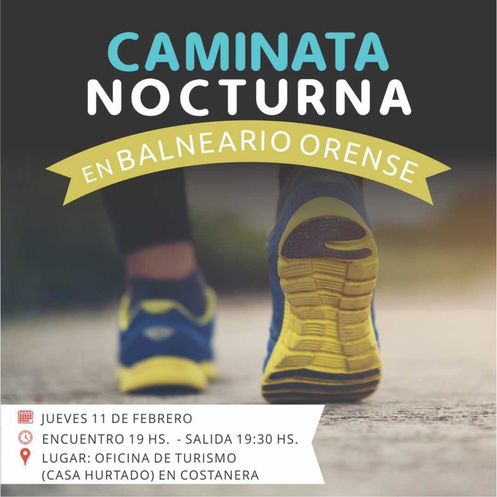 La Municipalidad de Tres Arroyos, a través de la Dirección de Deportes informa que el día Jueves 11 de febrero a las 19 horas se realizará una Caminata Nocturna por Balneario Orense