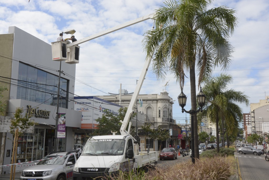 La Secretaría de Espacio Público del Municipio cambia las luces de sodio por nueva luminaria LED en la avenida principal de la ciudad. La reconversión implica un importante ahorro energético