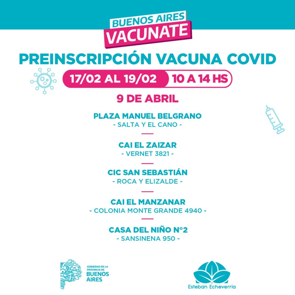(E. Echeverría, 16.Feb.2021 / A1 Noticias) Desde el miércoles 17 hasta el viernes 19 de febrero se podrán acercar a la Plaza Mitre, frente al edificio municipal; Plaza Crucero Gral. Belgrano, Nuestras Malvinas y Puerto Argentino; Plaza de Los Fundadores, L. Alem y Dardo Rocha; Plaza La Campana, Queirel y F. M. Esquiú; Delegación Malvinas, Constanzo 1887, y la Casa del Joven, A. Rojas 359, todos estos puntos en Monte Grande.