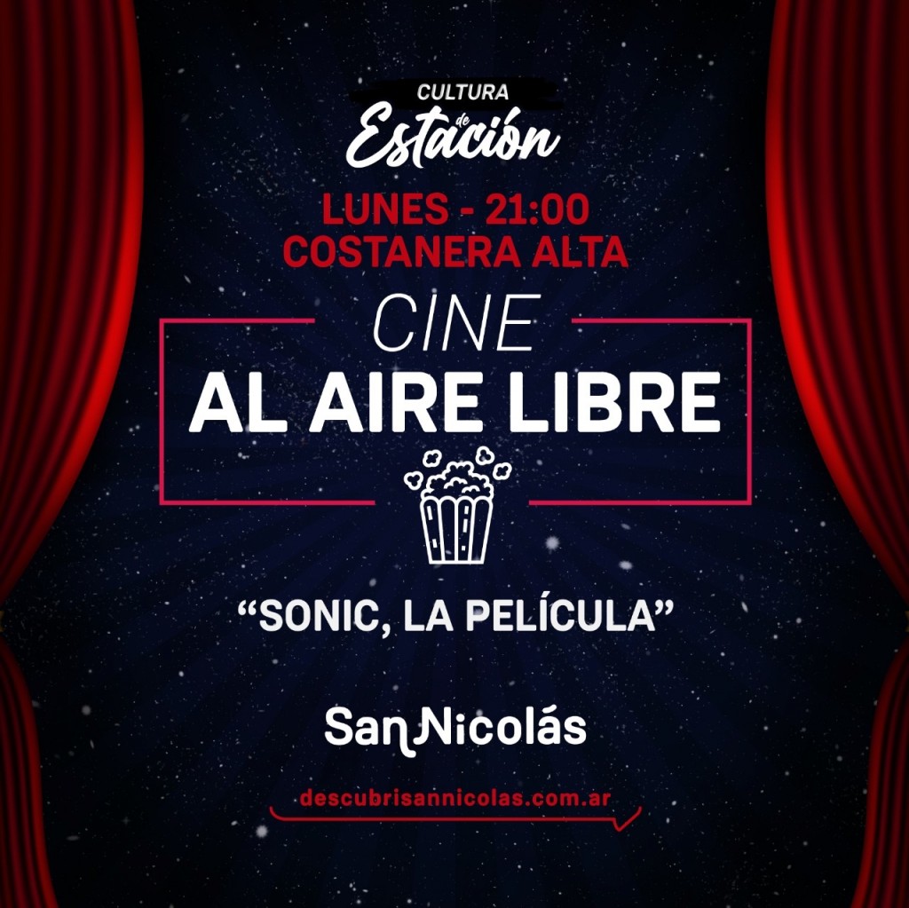 El Ciclo “Cultura de Estación” se trasladará a la Costanera Alta donde se vivirá una agradable noche de cine al aire libre. Desde las 21hs. el público que asista podrá disfrutar de una película apta para toda la familia: “Sonic, la película”