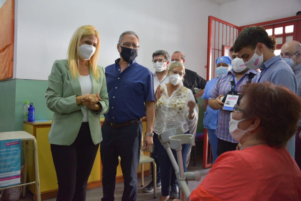 La Vicegobernadora de la Provincia de Buenos Aires, Verónica Magario, y el Intendente, Alberto Descalzo, recorrieron esta tarde el punto de vacunación contra Covid-19, ubicado en la Escuela Primaria Nº18