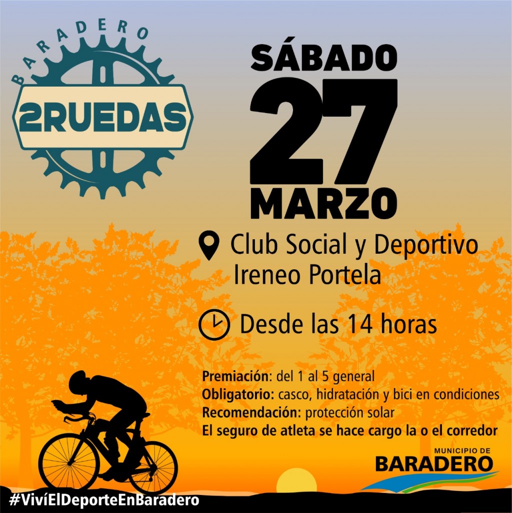 El sábado 27 de marzo se llevará adelante un nuevo evento deportivo en Ireneo Portela. Se trata de Baradero en Dos Ruedas, competencia de ciclismo totalmente gratuita y destinada a personas oriundas de Baradero, Portela, Alsina y Santa Coloma. En su reprogramación, el área de deportes determinó que el evento inicie a las 14 horas
