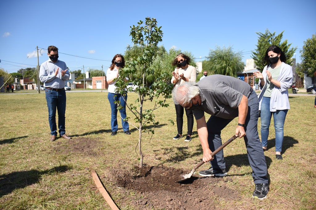 (Chivilcoy, 24.Mar.2021 / A1 Noticias)Cabe mencionar que la actividad tuvo lugar en la futura plaza de los Derechos Humanos en el Barrio Los Arces y fue organizada por la Secretaría de Derechos Humanos, Género y Diversidad del Municipio, en adhesión a la iniciativa a nivel nacional "Plantamos Memoria", que consiste en plantar árboles o arbustos en macetas, balcones, ventanas o jardines.