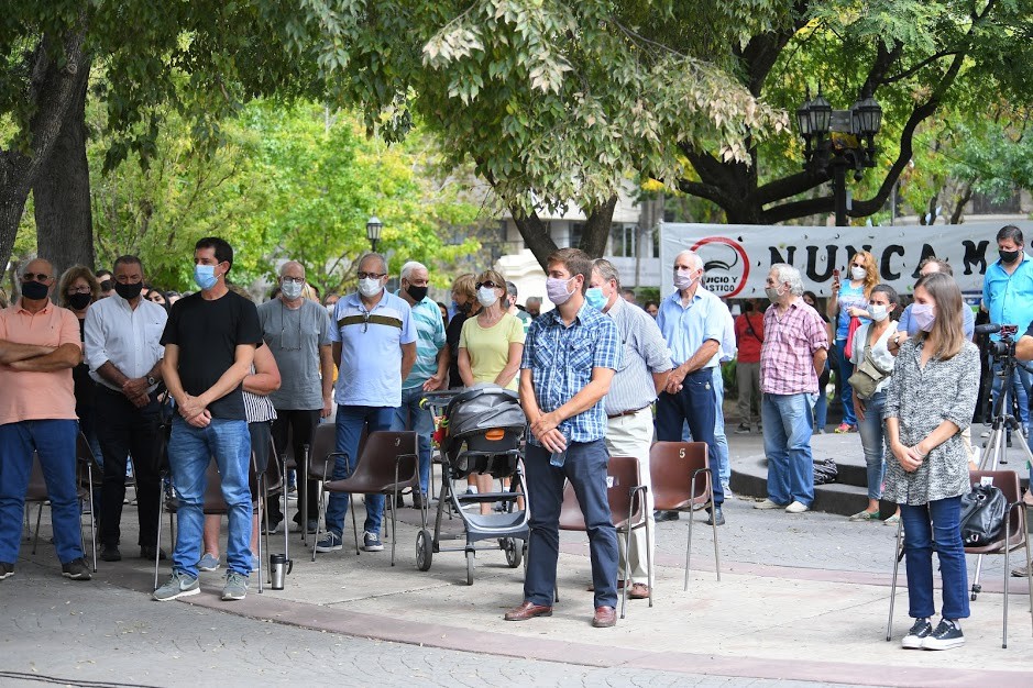 (Mercedes, 24.Mar.2021 / A1 Noticias)El acto se efectuó en Plaza San Martín, frente al monolito que contiene la placa de las víctimas locales de la represión dictatorial.