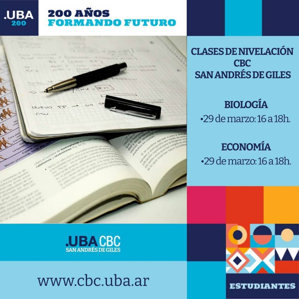 (S. A. de Giles, 29.Mar.2021 / A1 Noticias)Comienza un nuevo cuatrimestre y en pos de seguir igualando oportunidades difundimos el cronograma de clases de nivelación exclusivas para estudiantes del CBC de nuestra sede de las materias: Química, Matemática, Biología, Economía y Álgebra.