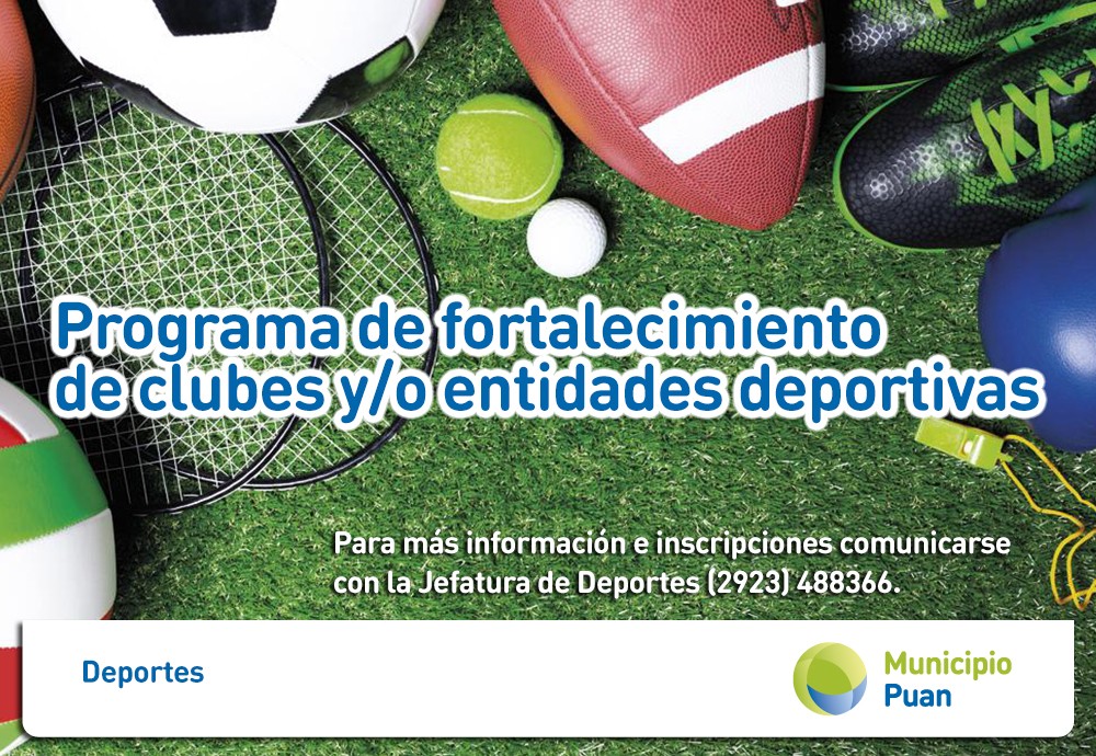 El Municipio de Puan, lanza el “Programa de fortalecimiento de clubes y/o entidades deportivas” con el objetivo de fomentar, promocionar y proteger a los Clubes y entidades Deportivas mediante el aporte de recursos económicos