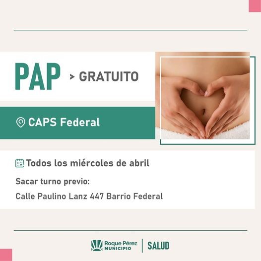 La Dirección de Salud informa que se pueden solicitar turnos en el CAPS del barrio Federal, ubicado en la calle Paulino Lanz 447, para realizarte el PAP de manera gratuita.
