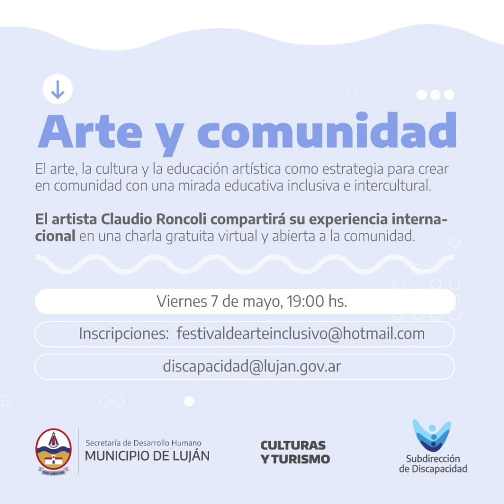 Luján: Se encuentra abierta la inscripción a la charla virtual “Arte y Comunidad” con el artista internacional Claudio Roncoli