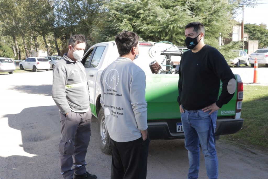 El director de Zoonosis de la Municipalidad, Enzo Solondoeta, recibió a trabajadores de la Dirección de Epidemiología de la Provincia de Buenos Aires, con quienes realizó un importante trabajo de pulverización en Bolívar y las localidades