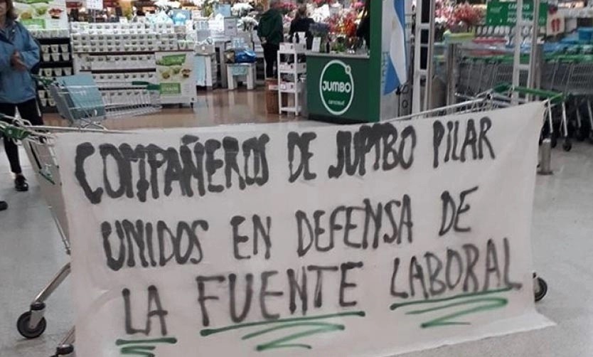 Pilar: Tensión en una protesta de empleados de Jumbo
