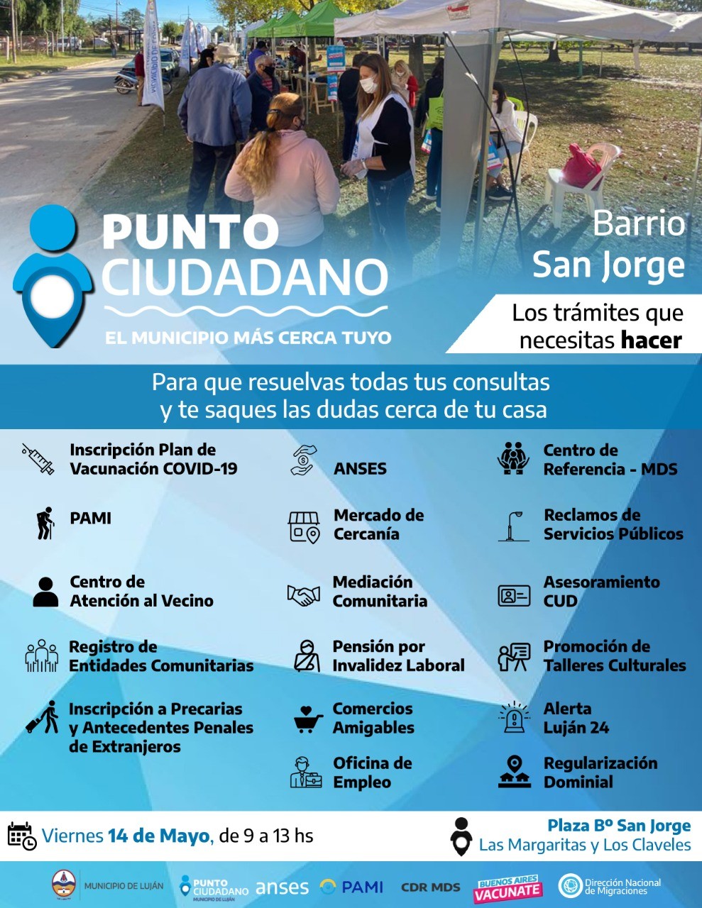 El programa Punto Ciudadano llegará este viernes 14 al barrio San Jorge, con el objetivo de acercar a la comunidad los servicios del Municipio y de otros organismos provinciales y nacionales