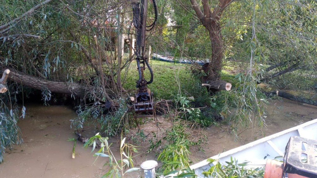 Por otra parte, se realizó el destronque y retiro de árboles en los arroyos Gambado y Toro - frente al muelle Senda Florida -, sobre Nuevo Rumbo y Mamá Luisa.