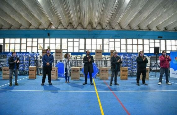 En el polideportivo Luis Monti de Belén de Escobar, el intendente Ariel Sujarchuk entregó 607 mesas, 1338 sillas y 48 calefactores que se destinarán a 54 escuelas públicas del distrito, con el objetivo de mejorar las condiciones de cursada de los alumnos y alumnas cuando retornen las clases presenciales