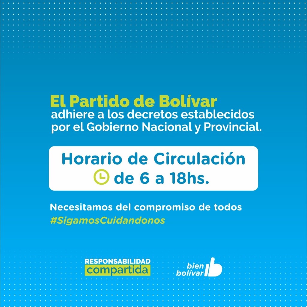Ante el alto riesgo epidemiológico del Partido de Bolívar, por el incremento desmedido de casos de Covid-19 en los último días y la crítica situación hospitalaría, el Gobierno Municipal adhiere a las nuevas restricciones establecidas en el DNU N° 334/2021. Las disposiciones regirán a partir del miércoles 26 de mayo, teniendo en cuenta los feriados establecidos por el Gobierno Nacional para este 24 y 25 de Mayo