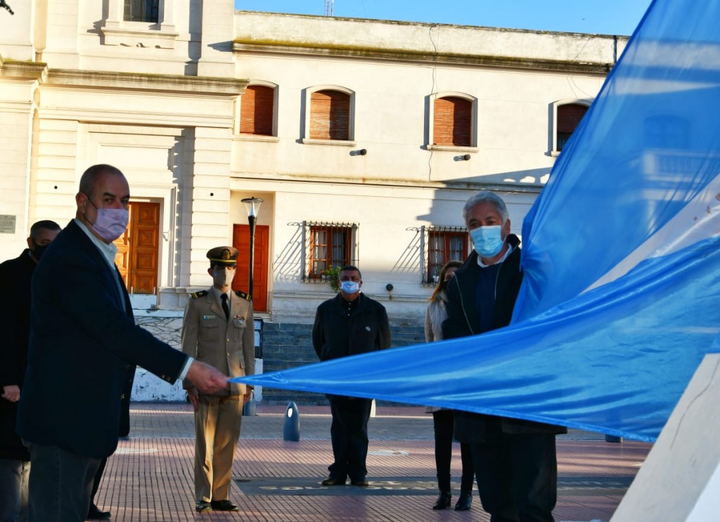 (Carmen de Patagones, 25.May.2021 / A1 Noticias)El mismo se realizó en la Plaza 7 de Marzo y contó con la presencia del Jefe de Gabinete, Fabio Bettinelli, el presidente del Concejo Deliberante, Julio Costantino, el presidente del Consejo Escolar, Paulo Bykaluk y la Jefa Distrital de Educación, Claudia Azpiroz.