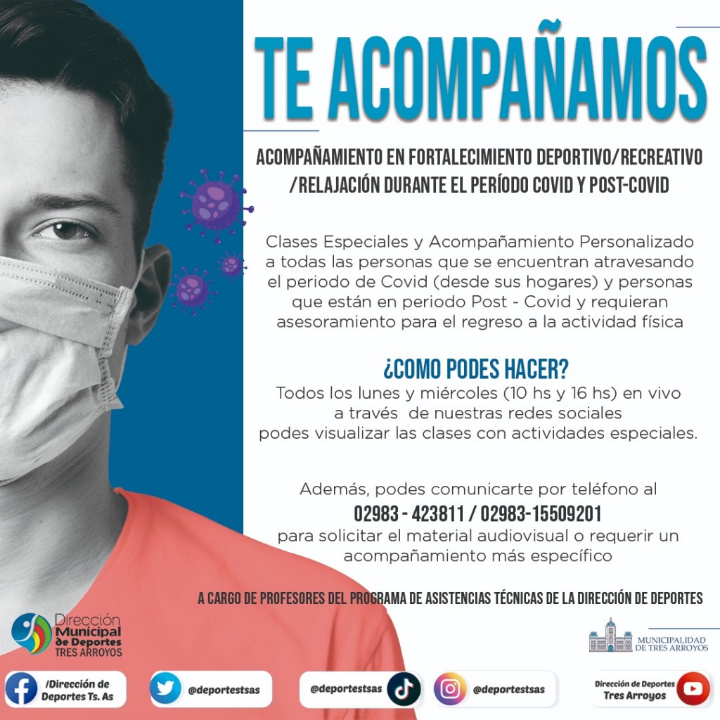 La Dirección de Deportes a través de la Municipalidad de Tres Arroyos presentó el proyecto "TE ACOMPAÑAMOS" para todas las personas que están atravesando el Covid en sus hogares o aquellas personas que están en el proceso Post - Covid