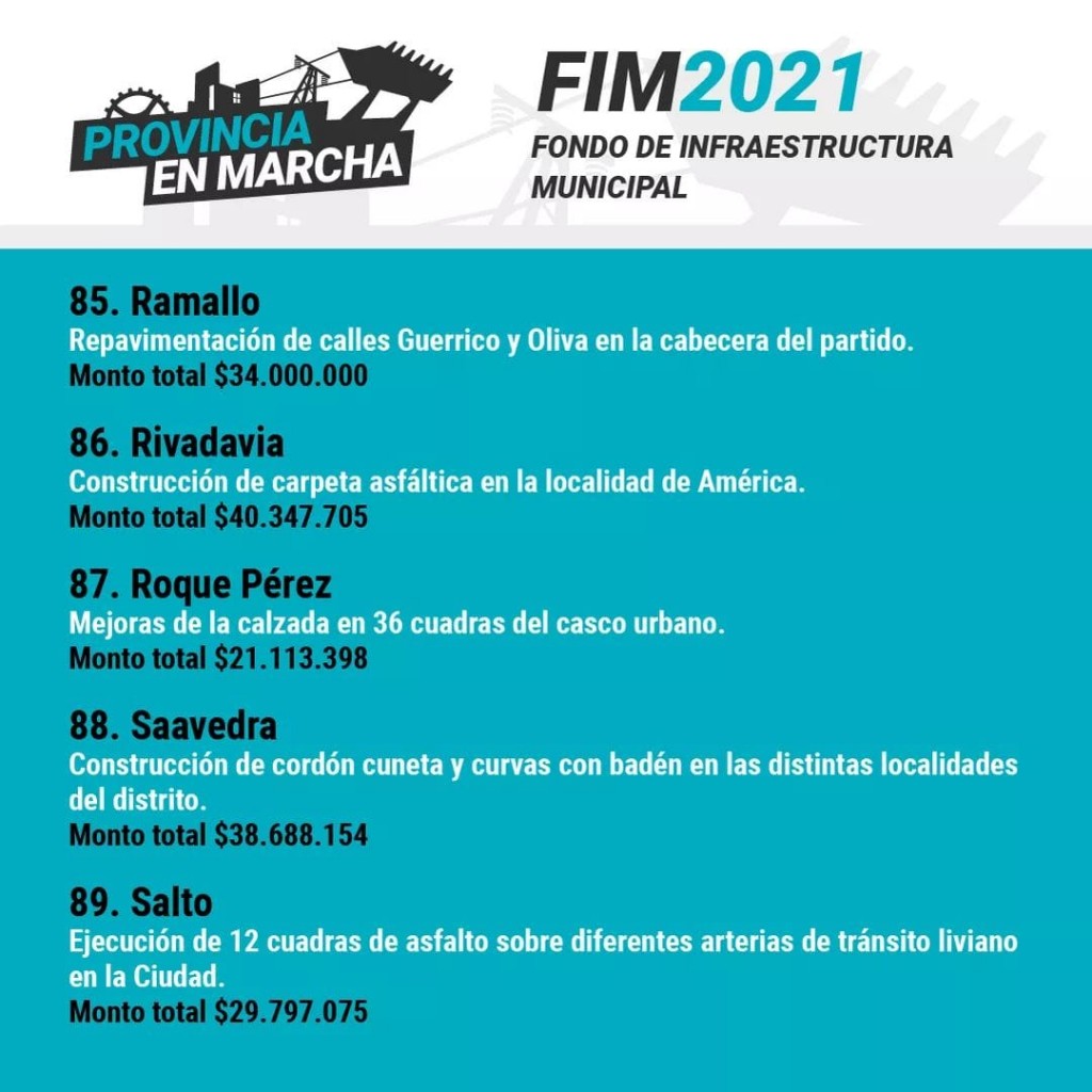 (Roque Pérez, 01.Jun.2021 / A1 Noticias)A partir de esta política provincial, vamos a llevar adelante mejoras de la calzada de 36 cuadras del casco Urbano.