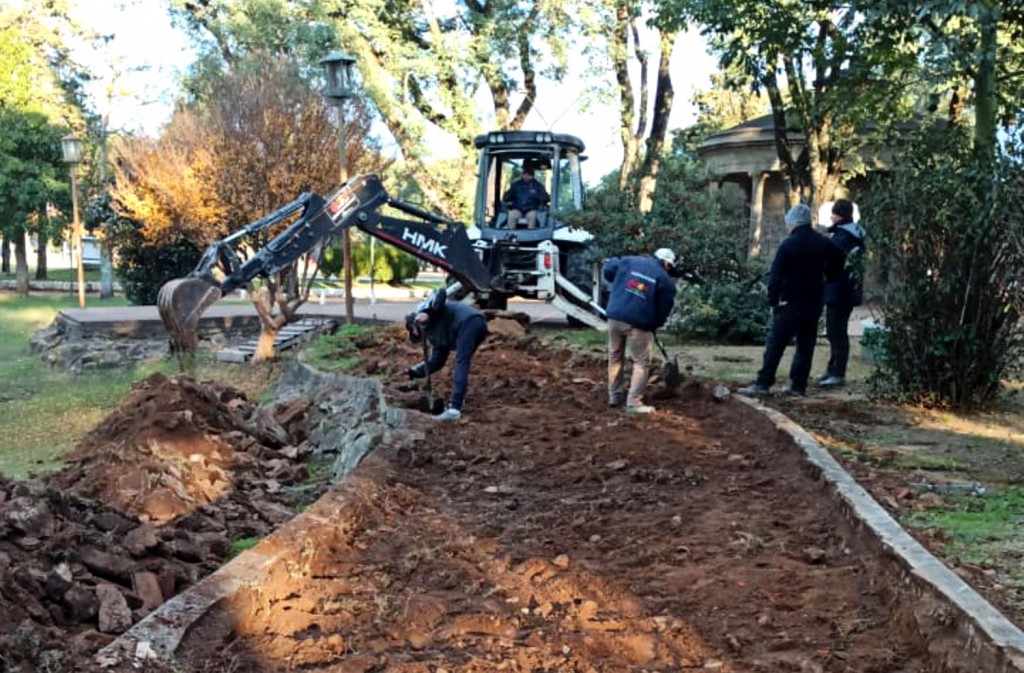Las tareas se complementan con una vereda que se realiza en bajo parque, que incluye además la construcción de un nuevo tramo de balaustrada hacia el sur. Los trabajos son ejecutados con personal y recursos propios de la Municipalidad.
