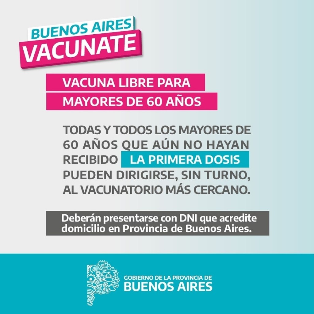 En Baradero ya rige la medida anunciada este viernes por el gobernador Axel Kicillof. Quienes quieran recibir la primera dosis deberán acercarse al vacunatorio ubicado en el Sindicato SOERM (Anchorena 1429) sin necesidad de inscribirse, sólo presentando el DNI que acredite domicilio en el distrito