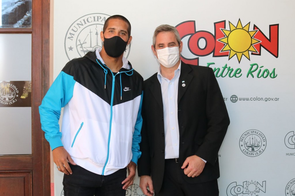 (Colón (ER), 14.Jun.2021 / A1 Noticias)Maidana se encuentra en la zona con la familia y aprovechó el fin de semana para descansar y aprovechar de los atractivos de la Ciudad en su primera visita a Colón. El Intendente le hizo entrega de un recordatorio de su paso por Colón y charlaron unos minutos de su trabajo en River Plate y de su estadía en la Ciudad de Colón el fin de semana.