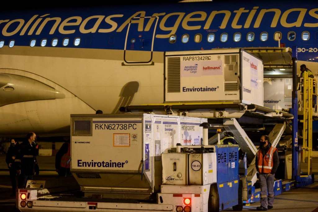 (Ezeiza, 22.Jun.2021 / A1 Noticias)Es la primera carga de una partida de dos millones de inmunizaciones de ese laboratorio, cuya recepción se completará hasta el miércoles a través de otro vuelo especial de la línea de bandera y uno comercial de Qatar Airways.