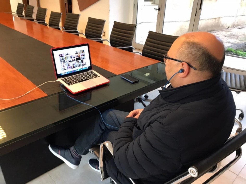 El intendente Esteban Reino participó esta mañana de una teleconferencia con el gobernador de la provincia de Buenos Aires, Axel Kicillof, para la presentación del convenio que brindará financiamiento a la comuna por $ 20.050.418 a través de la línea “Leasing Municipios 2021”