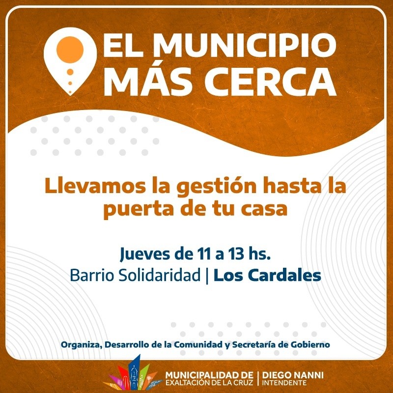 El programa “El municipio, más cerca” llego al barrio Solidaridad de Los Cardales, con el objetivo de llevar la gestión a la puerta de los vecinos, permitiendo la realización de consultas sin necesidad de presentarse en la delegación o las oficinas del municipio