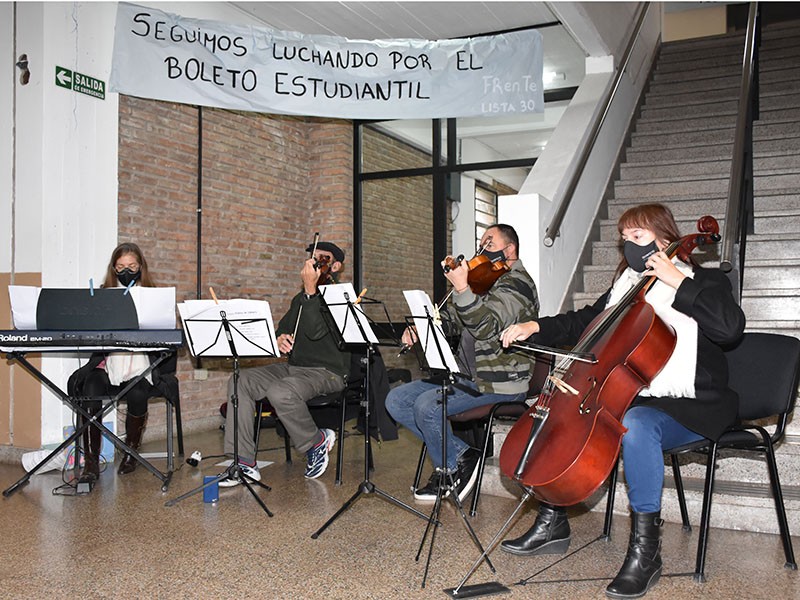 Berisso: El Quinteto de Cuerdas Municipal llevó su música al punto de vacunación que funciona en la UTN