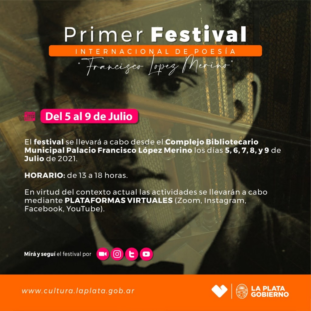 La Municipalidad de La Plata realizará el primer Festival Internacional de poesía “Francisco López Merino”, que se desarrollará del 5 al 9 de julio y contará con la participación de poetas locales y de todo el mundo