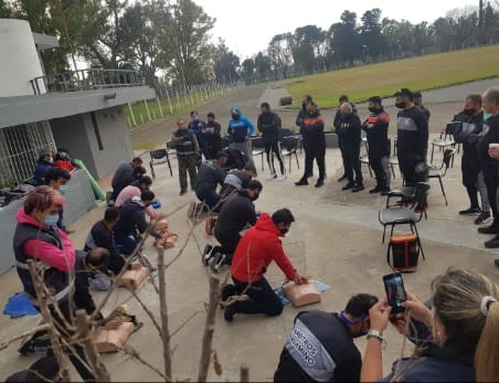 Las jornadas de capacitación en emergencias médicas y en primeros auxilios se llevaron adelante respetando las normas de protocolo, al aire libre y con una asistencia máxima de 40 personas. El temario integró deferentes puntos como: activación de la emergencia, diferencia entre emergencia y urgencia, epilepsia, convulsiones, pérdida de conciencia recuperada (desmayos), manejo de traumas a causa de golpes, atragantamiento y técnica de RCP (teórico y práctico).