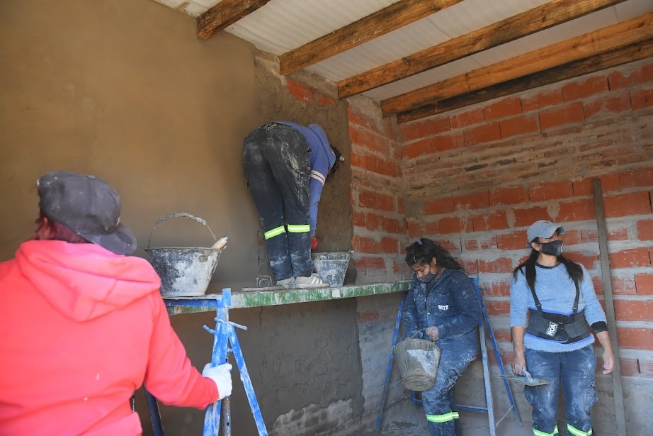 El grupo de trabajadores conocido como “las albañilas” trabajan diariamente en viviendas de la ciudad que necesitan una mejora. Genera varias acciones positivas entre las integrantes del grupo con valores como la solidaridad y el compañerismo. “Trabajamos con mis compañeros en este programa. En mi casa hicimos el revoque en las ventanas, se terminó le techo y se colocaron puertas. A nosotros nos mejoró enormemente la vida en la familia. Lo más importante del grupo de albañilas es que nos capacitan para poder trabajar en albañilería y además estamos ayudándole a la gente también a mejorar su vida”, dijo Daniela Valdez, madre de 4 chicos que vive en la localidad de Gowland e integra el plantel de albañilas.