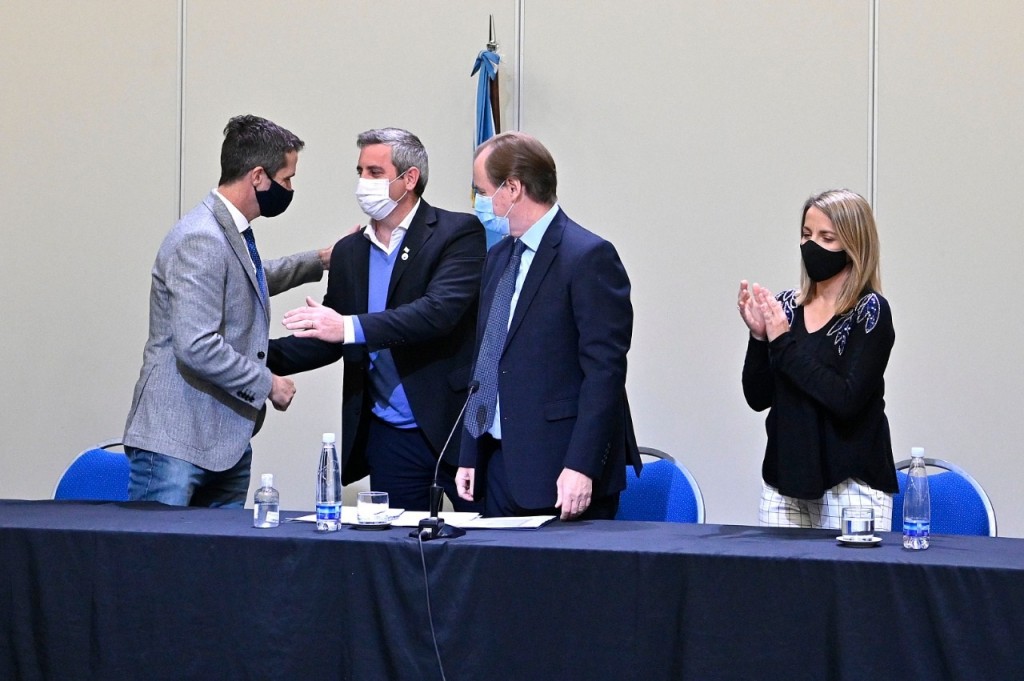 (Colón (ER), 03.Agos.2021 / A1 Noticias)El Intendente de Colón José Luis Walser firmó este lunes en Paraná, el convenio que permitirá construir 50 nuevas viviendas para vecinos de la Ciudad. El acto se llevó a cabo en el Centro de Convenciones de Paraná, encabezado por el Gobernador Gustavo Bordet, la Vice Gobernadora Laura Stratta, el administrador del ENHOSA Enrique Cresto, el presidente del IAPV Marcelo Bisogni y el Ministro de Planeamiento Marcelo Richard.
