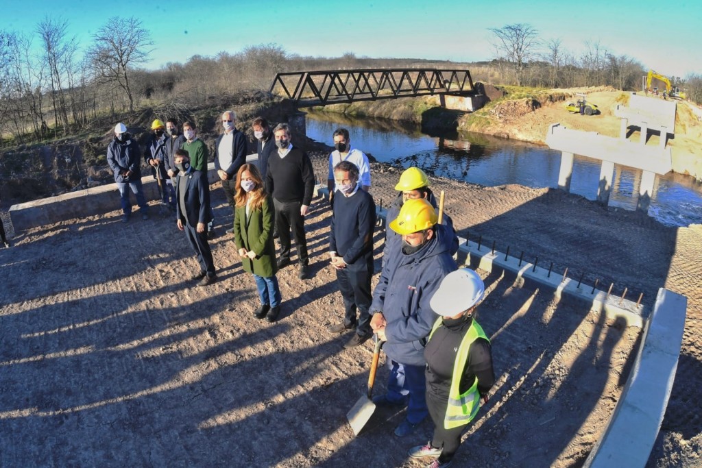 El Intendente Leonardo Boto y su par de Mercedes, Juan Ignacio Ustarroz, junto al Gobernador Axel Kicillof y el Ministro de Obras Públicas de la Nación, Gabriel Katopodis, supervisaron este martes el avance de las obras de construcción del nuevo puente de la localidad de Olivera -que ya se encuentra en la etapa final de montaje de vigas y construcción de la carpeta asfáltica