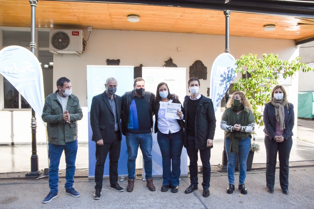 El Intendente Nicolás Mantegazza y el Ministro de Desarrollo Territorial y Hábitat de la Nación, Jorge Ferraressi, encabezaron el acto de entrega de créditos del programa Casa Propia a 16 familias del distrito