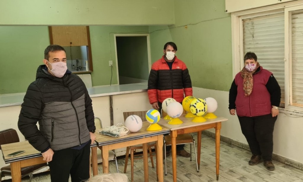 (Puan, 11.Ago.2021 / A1 Noticias)Junto al Delegado local, Mauro Clemente, hizo entrega de material deportivo destinado a la Escuela Primaria y Jardín de Infantes.