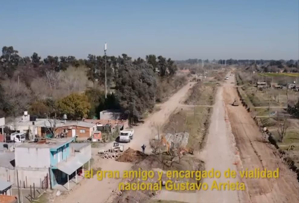 El jefe de comuna merlense, Gustavo Menéndez estuvo presente en la construcción de 38 cuadras de autovía sobre la ruta 1003 a partir de la curva de La Teja en la localidad de Libertad