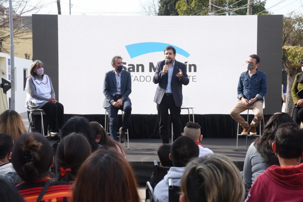 El intendente de San Martín, junto al ministro de Obras Públicas, Gabriel Katopodis, y la secretaria para la Integración Educativa, Cultural y Deportiva, Nancy Cappelloni, presentaron el nuevo edificio para estudiantes con discapacidad motora
