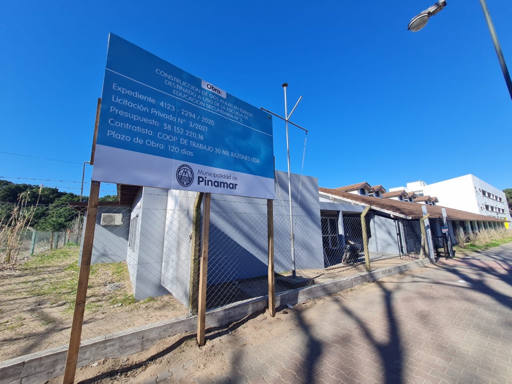 (Pinamar, 27.Ago.2021 / A1 Noticias)Por medio de la implementación del Fondo Educativo, se están construyendo 2 aulas nuevas en la Escuela Secundaria Nro. 5 (Ex ENET).