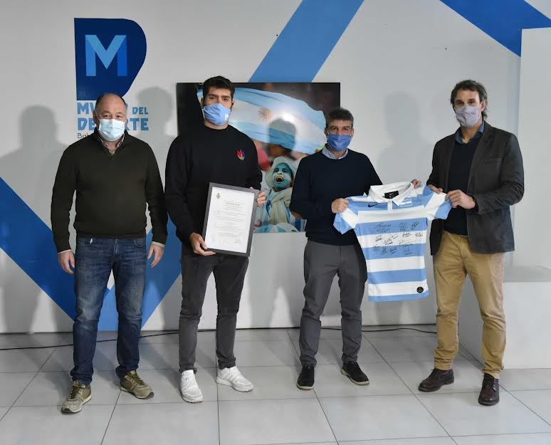 En representación del Municipio de Bahía Blanca, el secretario de Gobierno, Adrián Jouglard, entregó un reconocimiento a Santiago Álvarez Fourcade, capitán de los Pumas 7s, ganador de medalla de bronce en los Juegos Olímpicos de Tokio