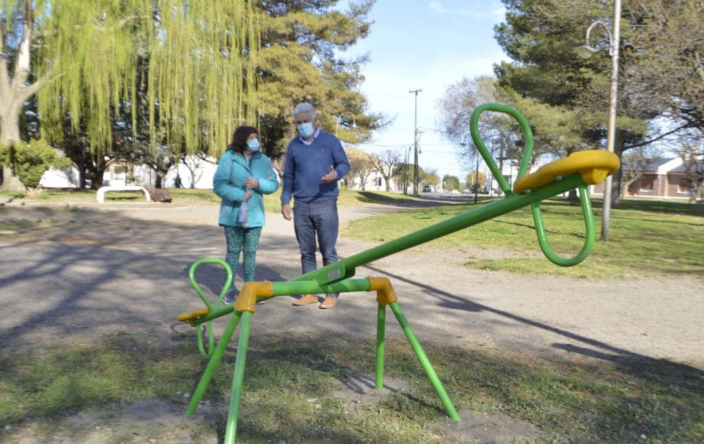 El Intendente Municipal, Ing. José Luis Zara, visitó la plaza Chacabuco, de Carmen de Patagones, donde se colocaron juegos recreativos recientemente