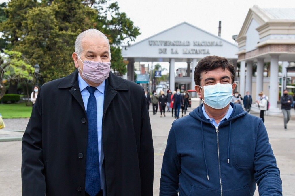 El intendente Fernando Espinoza, recorrió la Universidad Nacional de La Matanza junto al rector de dicha institución, Daniel Martínez, y habló con los estudiantes universitarios que están retomando la presencialidad. La UNLaM cuenta con más de 55.000 alumnos de los cuales el 92% son la primera generación de estudiantes universitarios de su familia