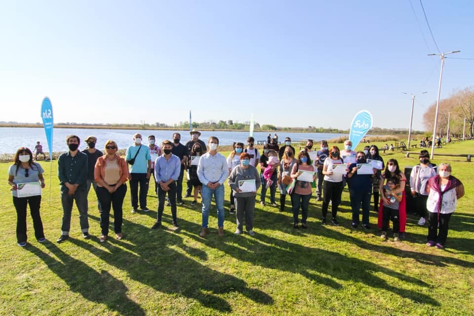 El Intendente Municipal, Nicolás Mantegazza, junto al Director General de la Agencia Municipal de Ambiente, Saúl Soria y Juan Pablo Ballesteros, realizaron en el predio de la Laguna del Ojo, la entrega de certificados a los participantes de los seminarios dictados en la Municipalidad de San Vicente a través de la Agencia Municipal del Ambiente y la Escuela de Jardinería y Agroecología