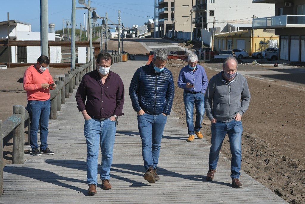 El jefe comunal junto a sus funcionarios, finalizaron la recorrida por el nuevo Desarrollo Urbano Costero, que tras la ejecución de los desagües pluviales y badenes longitudinales en el primer tramo de Costanera, de un total de catorce cuadras a remodelar, avanza con la pavimentación articulada desde Av. Alfonsín hacia el este, hasta la calle Pedro de Mendoza, con la expectativa de contar con los trabajos finalizados para la temporada estival.