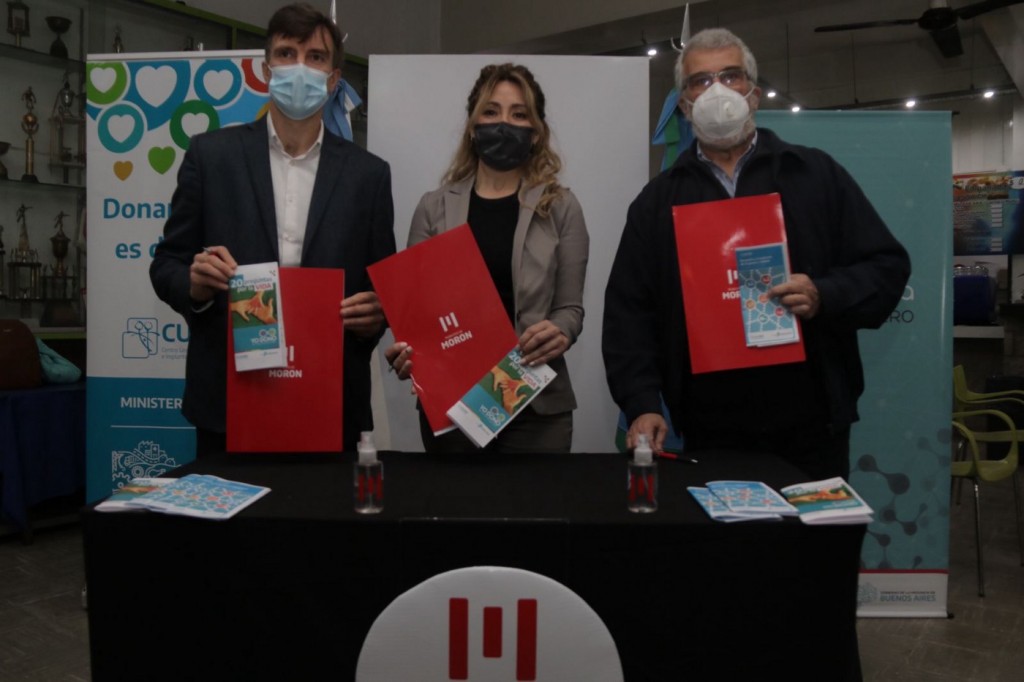 (Morón, 24.Sep.2021 / A1 Noticias) El intendente Lucas Ghi firmó un convenio con el presidente del Centro Único Coordinador de Ablación e Implante de la Provincia de Buenos Aires (CUCAIBA), doctor Francisco Leone, y con la titular del Instituto de Hemoterapia de la Provincia de Buenos Aires, la doctora Laura González.