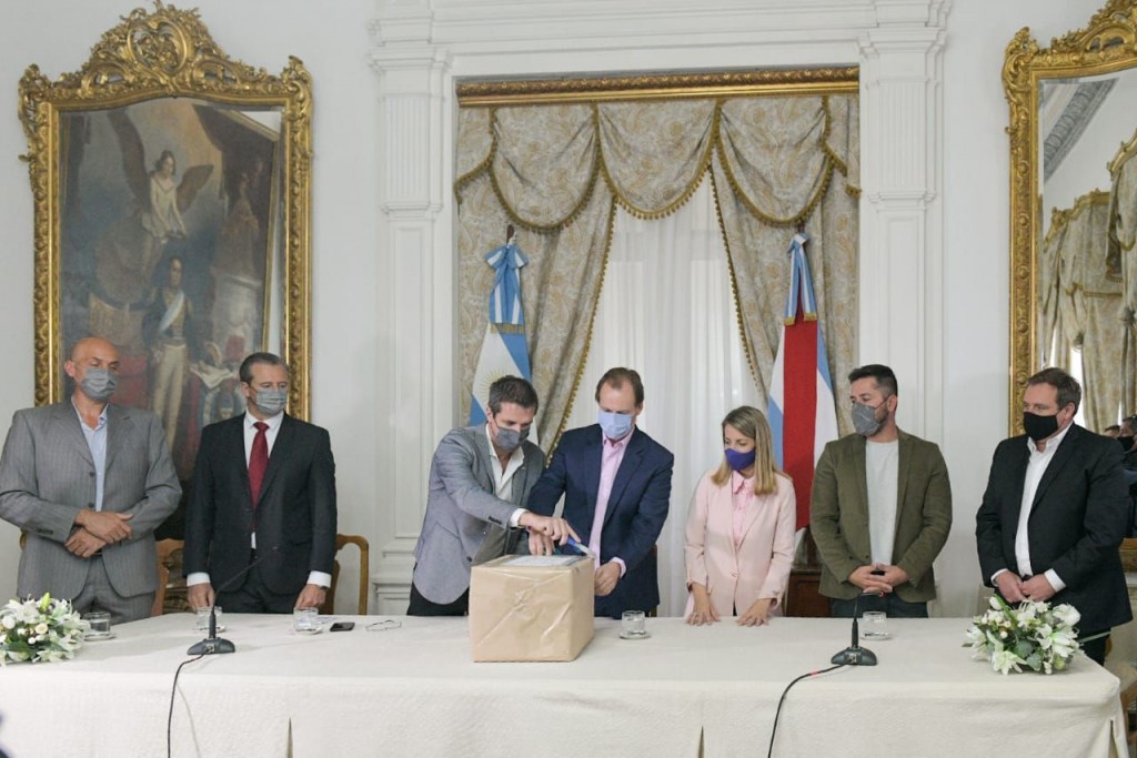 El acto se realizó este viernes en el Salón Blanco de la Casa de Gobierno. También participaron la vicegobernadora Laura Stratta; los intendentes de Colonia Avellaneda, Ariel Weiss; de San Benito, Ezequiel Donda y de Oro Verde, Oscar Toledo. Además estuvieron el ministro de Planeamiento, Infraestructura y Servicios, Marcelo Richard; legisladores nacionales y provinciales, y representantes de empresas contratistas, entre otros.