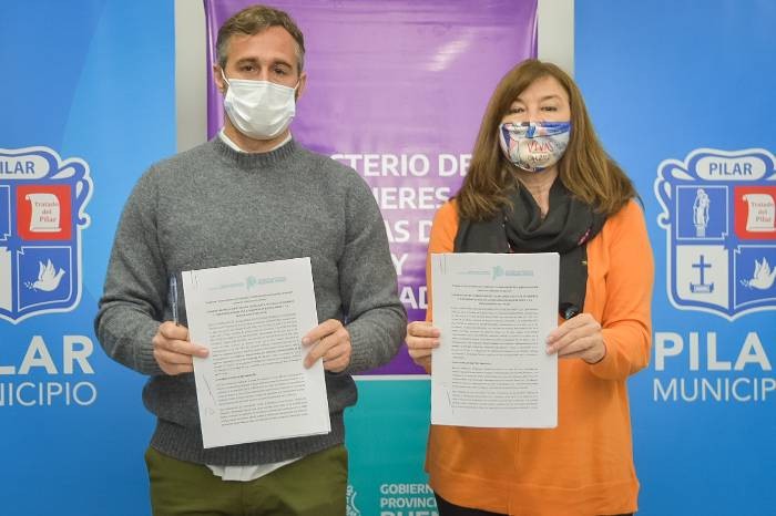 La ministra de las Mujeres, Políticas de Género y Diversidad Sexual Estela Díaz visitó el municipio de Pilar y junto al intendente Federico Achaval firmó el convenio de adhesión al programa “Comunidades sin Violencias”.