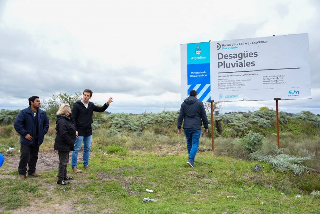 San Vicente: Mantegazza recorrió las obras de desagües en Villa Coll y Esperanza